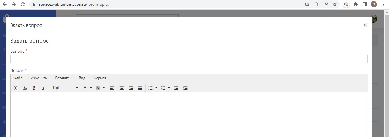 Супервизор публикует вопрос через кнопку Задать вопрос и может добавить описание к нему. Форум можно использовать для оповещения с какими-либо инструкциями. Редактор текста стандартный.