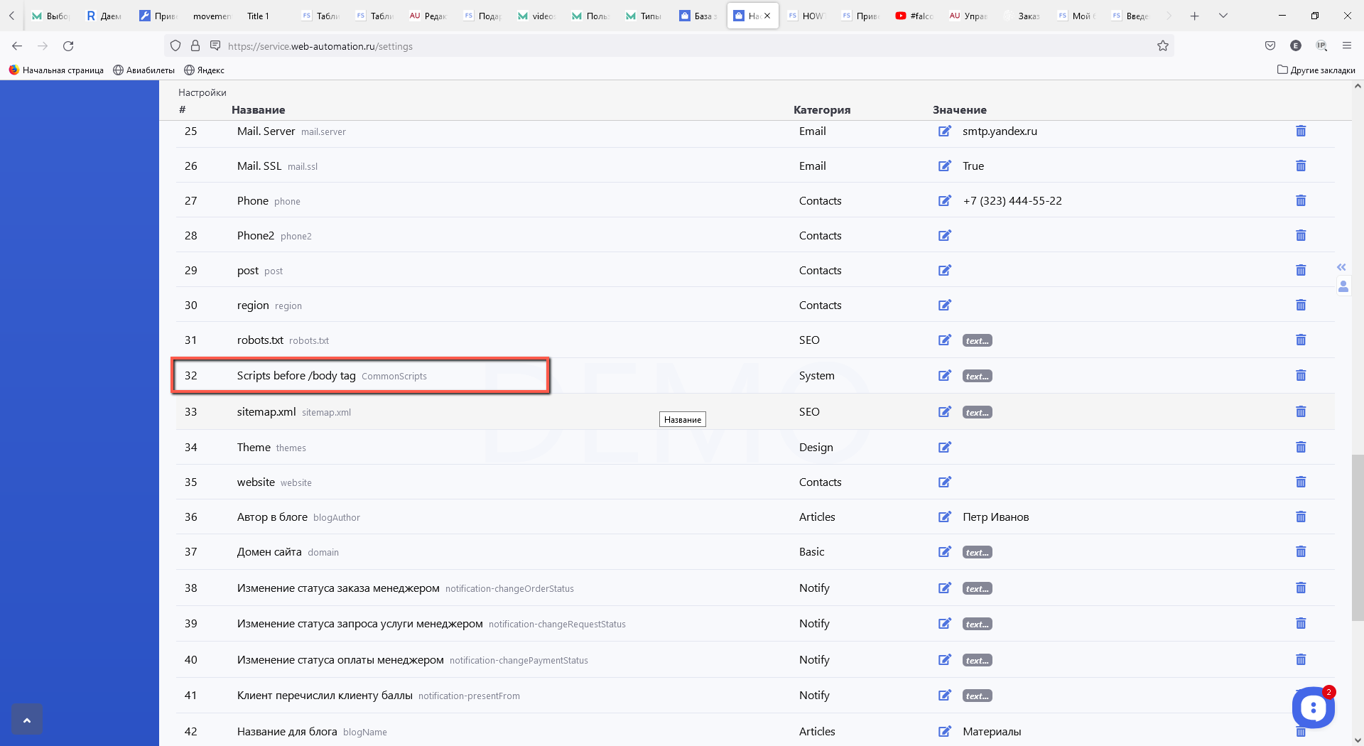 - HOWTO СИСТЕМА Как посмотреть текущую статистику по посещаемости Как установить Favicon/лого Как установить ключ техподдержки по умолчанию (виджет внизу справа) Как редактировать статичные страницы (Главная, Правила, Конфиденциальность) Как добавить счетчики аналитики, свои стили CSS или некий JS скрипты Как проверить в системе целостность данных (например, найти менеджеров или клиентов без точки) Как изменить подвал(footer) сервиса Как изменить разметку страницы товара Как создавать значок сайта на экране телефона. Поддержка PWA технологии Управление заказами и услугами Передача данных по всем уведомлениям в системе через API