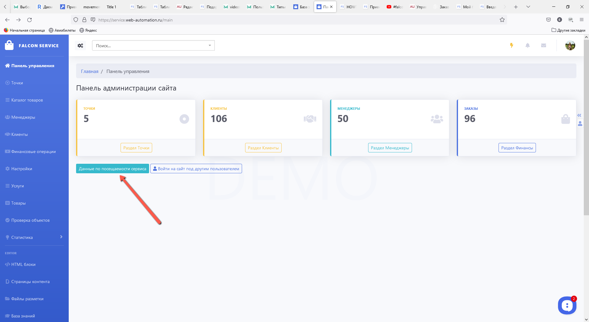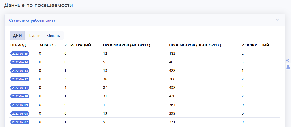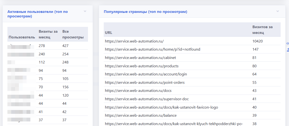 Там вы можете просмотреть посещаемость сервиса, а также активность пользователей