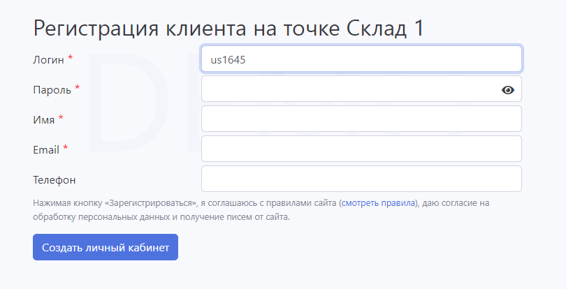 На лендинге размещается кнопка для регистрации регистрации нового клиента на эту точку.