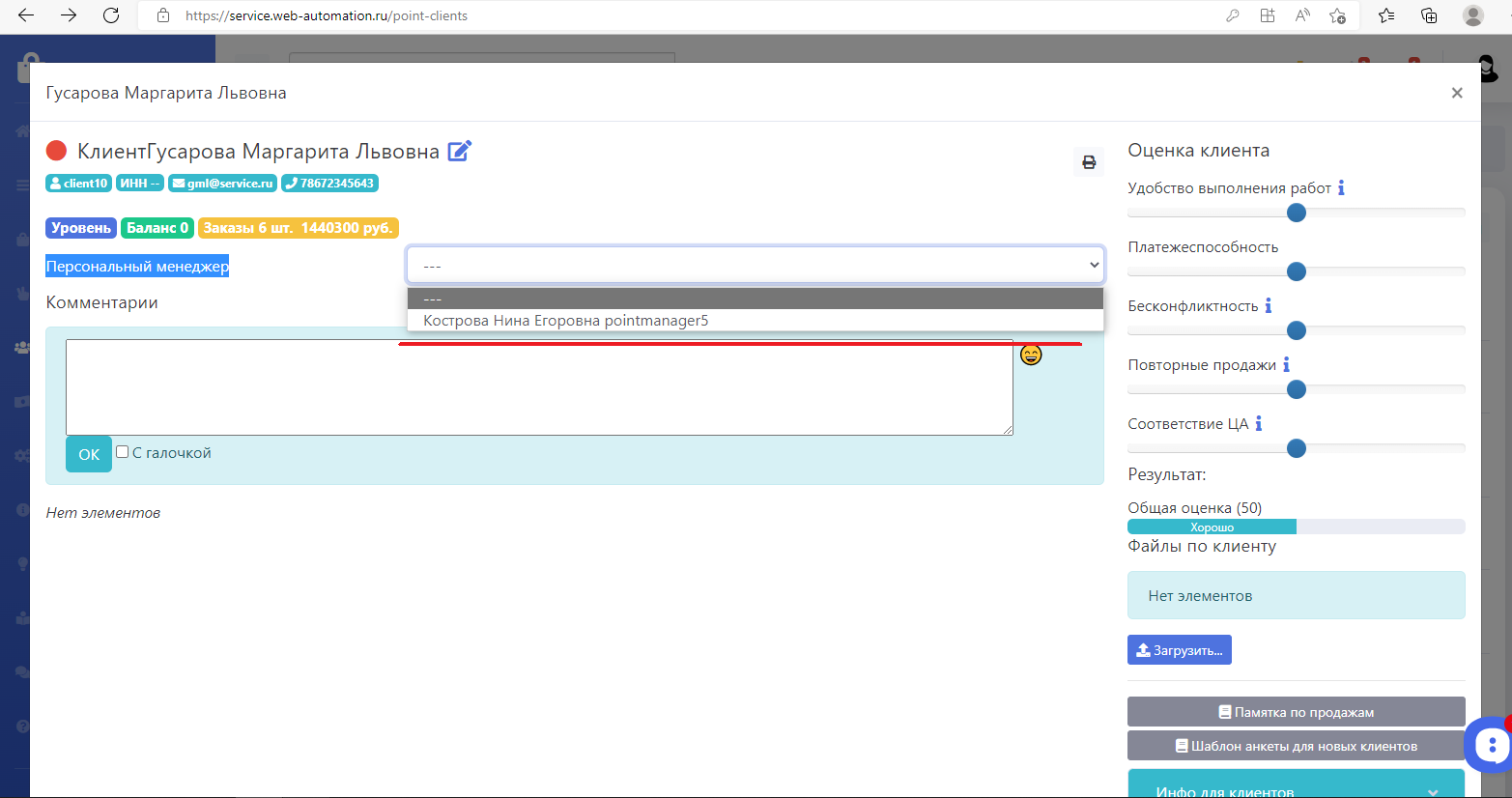 В поле "Персональный менеджер" выбираем нужного менеджеа.