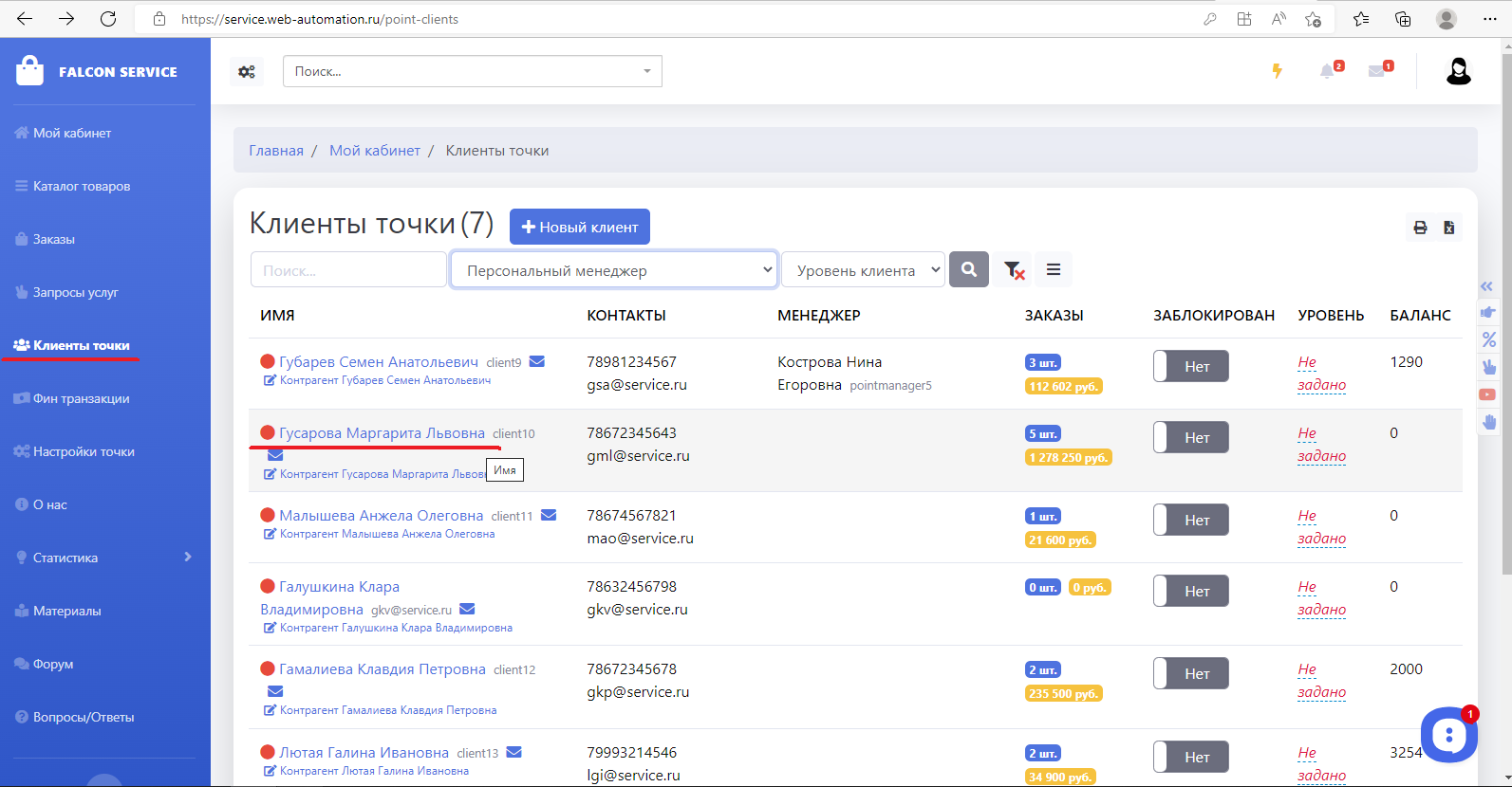 Изменить менеджера можно на странице Клиенты точки на форме клиента.