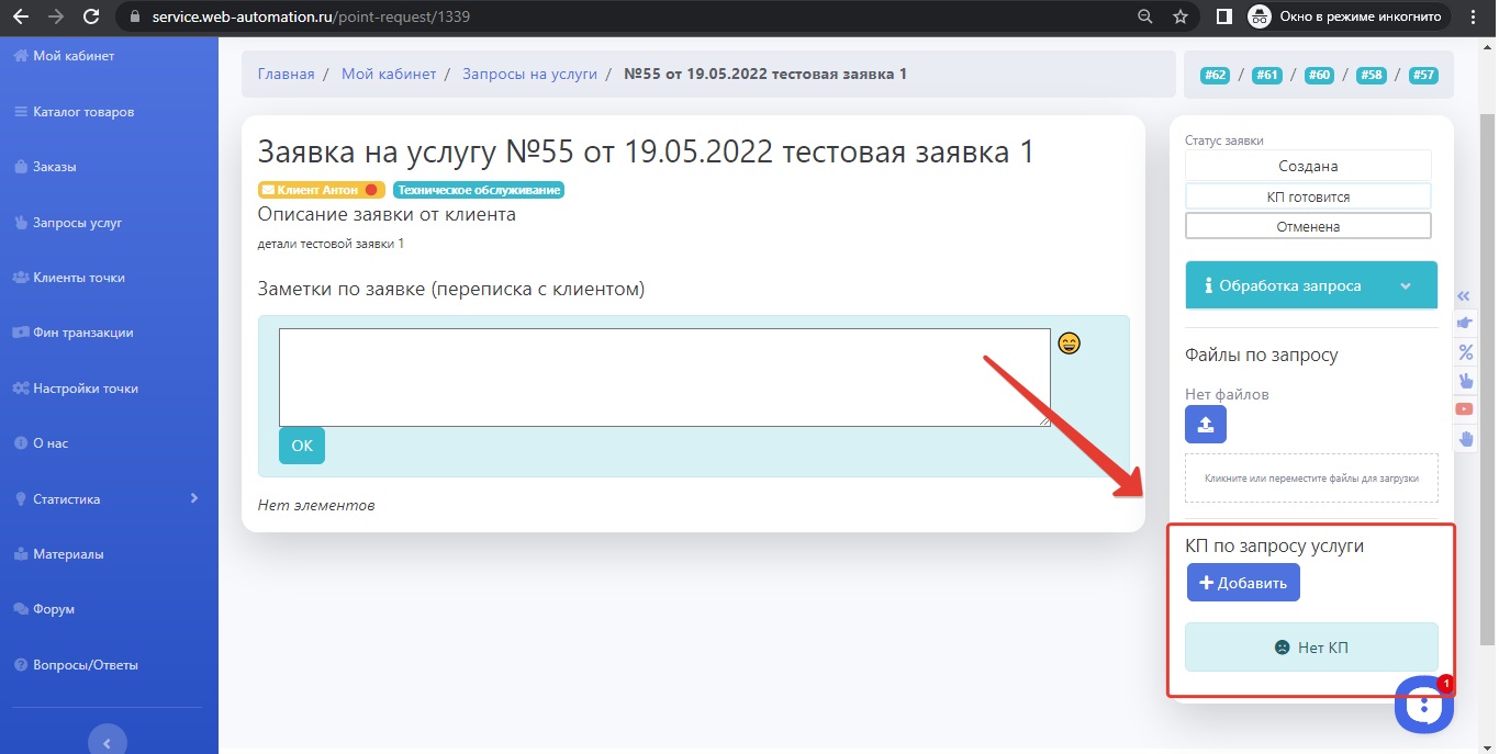 Для согласования с клиентом стоимости и сроков выполнения его заявки менеджер точки готовит коммерческое предложение (КП).
