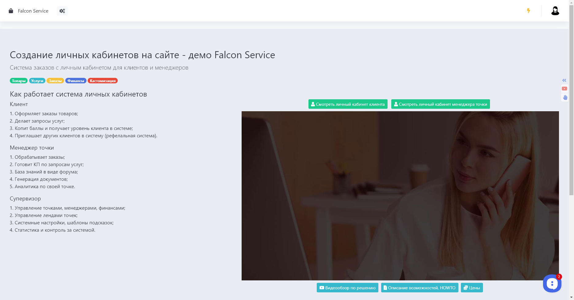 - ВВЕДЕНИЕ Описание решения личных кабинетов для обработки заказов Структура решения Falcon Service Установка и первичная настройка системы Кастомизация сервиса под свои нужды Календарь в кабинете Менеджера и Супервизора